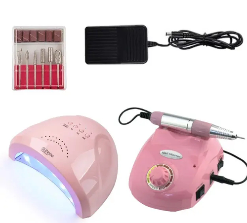 Набір – лампа на 48 Вт. (SunOne) + фрезер 603 на 65 Вт. на 45000 об/хв. для манікюру та педикюру - Рожевий